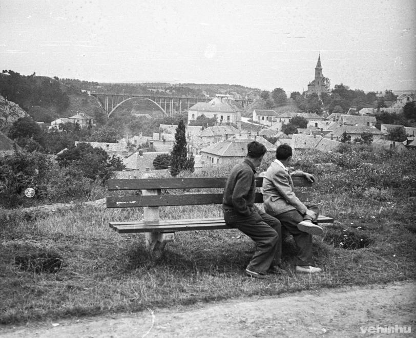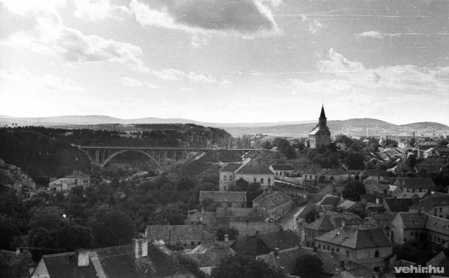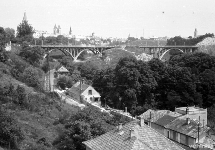 1958. Magyarország,Veszprém Szent István völgyhíd (Viadukt) és a Temetőhegy.