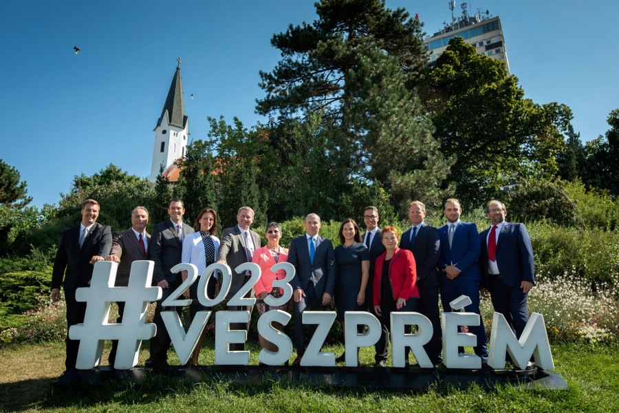 Szerda délelőtt jelképesen a Hangvilla előtti Veszprém2023 installáció előtt mutatta be Porga Gyula (Fidesz-KDNP) polgármester a pártcsalád jelöltjeit az önkormányzati választásra.