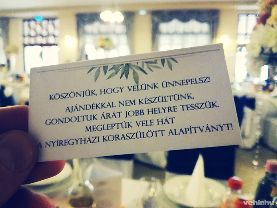 Mégpedig az, amikor elfoglaltuk helyünket az asztalnál az ültetőkártya alapján. Köszönőajándéknak viszont hűlt helye sem volt, erre a magyarázatot pedig a kártya hátoldala adta meg.