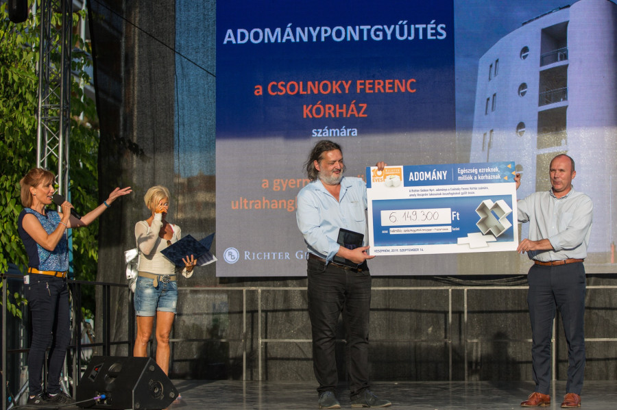 A nap fénypontja persze az adomány átadása volt, a veszprémiek pedig ezúttal is bizonyítitták, hogy ha összefogásról van szó, nem kell kétszer szólni nekik. A Richter Gedeon Nyrt. felajánlásával és a résztvevők pontjaival együtt végül kiemelkedően magas összeget, 6 149 300 forintot sikerült összegyűjteni a megyei kórház javára.