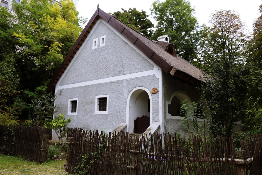 A három osztatú, boltíves parasztházat 1935-ben épült fel közadakozásból: Veszprém vármegye és Veszprém város mellett 11 vállalat, szervezet, illetve számtalan magánszemély járult hozzá a létrejöttéhez, a veszprémi iparosok és kereskedők munkájukkal segítették a felépülését.