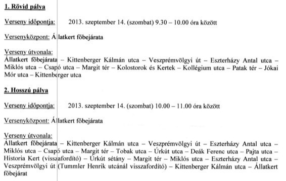 A rövid (2 km) és a hosszú (5 km) pályákat a következő útvonalon jelöljük ki: