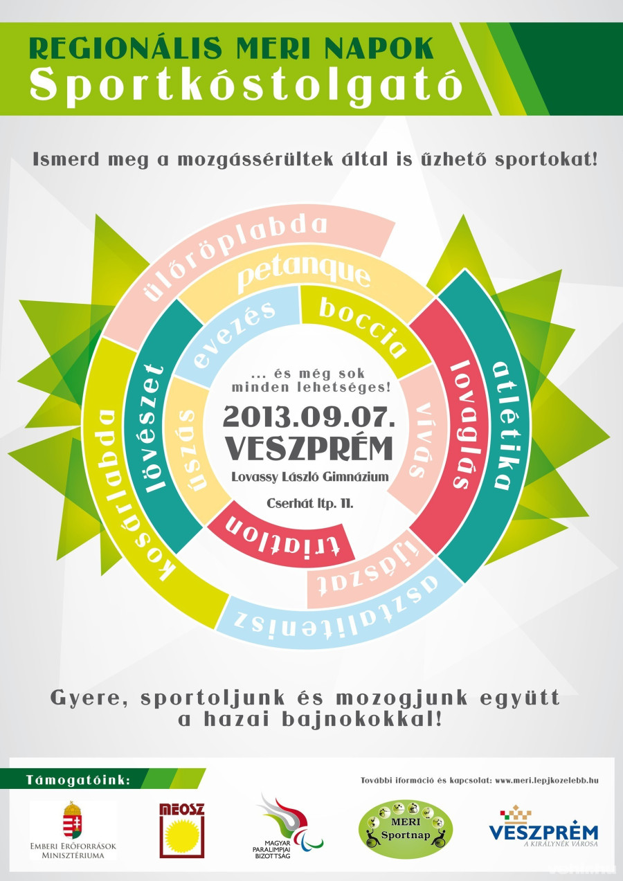Dani Gyöngyi ezüstérmes paralimpikon vívó elárulta: olyan sportágakat mutatnak be szombaton, amelyek bárki számára elérhetőek. Pápáról egy szkanderklub képviselői érkeznek. A veszprémi vívók is nyitottak, szívesen fogadják a kerekesszékeseket is. Dani Gyöngyi megjegyezte, hogy a kerekesszékes vívásban nincs lehetőség félreugrani a szúrások elől, a sportolók sikere sokkal inkább a vívótechnikájukon múlik, mint egészséges társaiknak.