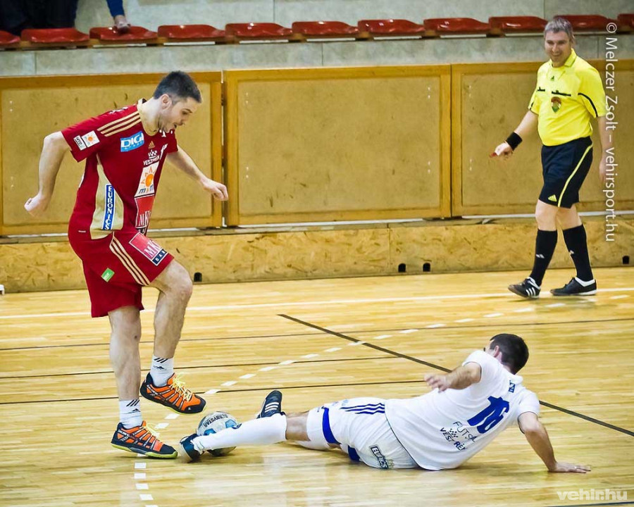 A futsalosok öt kapuvédővel kezdtek, de Jónás Áron révén így is meg tudták szerezni a vezetést. Carlos Ortega vezetésével aztán fordítani tudtak a kézisek, akik hamar bebizonyították, hogy ebben a játékban is otthonosan mozognak. A spanyolt tréner mellett honfitársa, Cristian Ugalde, valamint Iváncsik Gergő és Fazekas Nándor is megmutatta, a lábbal is kifejezetten ügyesen terelgeti a játékszert. Utóbbi ezúttal a mezőnyben szorgoskodott, s meglehetősen szokatlan látványt nyújtott piros mezben, miképp a 208 cm magas Nagy László is a két méter magas kapu előtt.