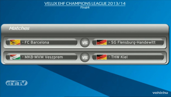 A négyes döntőnek otthont adó Kölnben kedden kisorsolták a férfi kézilabda Bajnokok Ligája elődöntőinek párosítását. E szerint a Veszprém a THW Kiel együttesével találkozik, a másik ágon pedig a Barcelona és a Flensburg mérkőzik meg a fináléba kerülésért.
