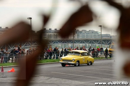 Az eligazításon ifj. Mulicz László elmondta a versenyzőknek a rájuk vonatkozó szabályokat, majd bemutatta a pálya pontos nyomvonalát. Ám ez, a kiosztott pályarajzok, valamint a reggeli pályabejárás sem volt elég, mert a mezőny felének pályatévesztéssel ért véget az első köre. A nem túl bonyolult szlalom pályán hamar kiderült, ki volt eléggé felkészült a viadalra, hisz az erős BMW-k és látványos Ladák mellett a Trabantokkal küzdöttek az abszolút elsőségért. Aztán jött Bognár Martin, a tizenhét éves pilóta és lepipálta a mezőny orrát egy abszolút idővel, amit a következő két körben sem tudott senki megközelíteni. A két szpíker Kőváry Barna és Markó Tibor – akik egyébként hatalmas hangulatot varázsoltak a rakpartra – is csak ámultak az ifjú titán vezetési tudását látva.