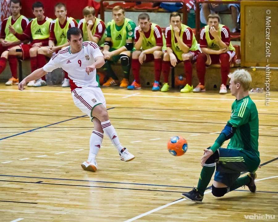 Az első félidőben tompán, sok hibával futsalozott a házigazda, így elsősorban a jó felépítésű játékosokból álló vendég alakulat akarat érvényesült a játéktéren. A 9. percben aztán a vezetést is megszerezték egy közeli szabadrúgás végén. Negyed óra elteltével pedig meg is duplázta előnyét a belorusz együttes, miután Lódi szerencsétlen mozdulattal a saját hálójába fejelte a játékszert.