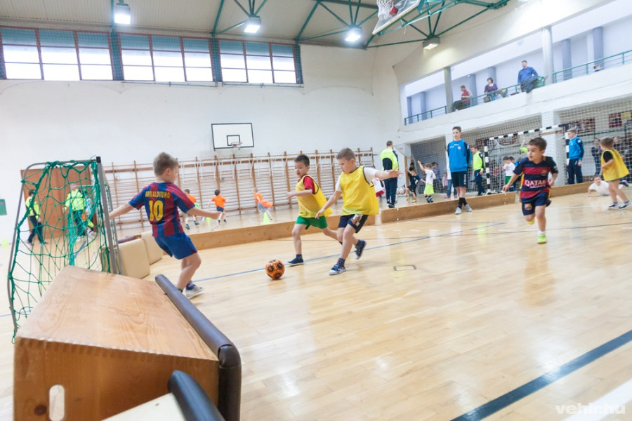 A labdarúgó gyakorlatokat az NB I-ben szereplő 1. Futsal Club Veszprém edzői és játékosai vezényelték. Közel negyven nagycsoportos óvodás töltötte meg önfeledt jókedvével a csarnok játékterét. A csoportokba osztott gyerekhad különböző gyakorlatokban – kapura lövésben, labdavezetésben, célba lövésben, ügyességi feladatokban – próbálhatták ki tudását.