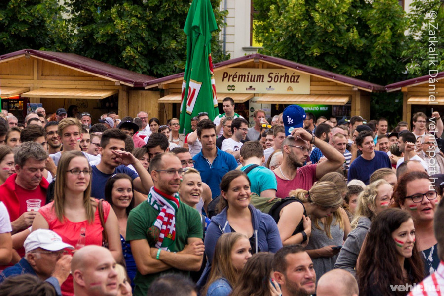 Az ország számos településhez hasonlóan Veszprémben is sokan döntöttek úgy, hogy közösségben buzdítják az Európa-bajnokságra negyvennégy év után visszatérő labdarúgó-válogatottat. Az Óváros téren felállított óriáskivetítőnél több százan gyűltek össze, s szurkolták végig a Storck-csapat Ausztria elleni 2-0-s bordeaux-i diadalát az F-csoport első fordulójában.