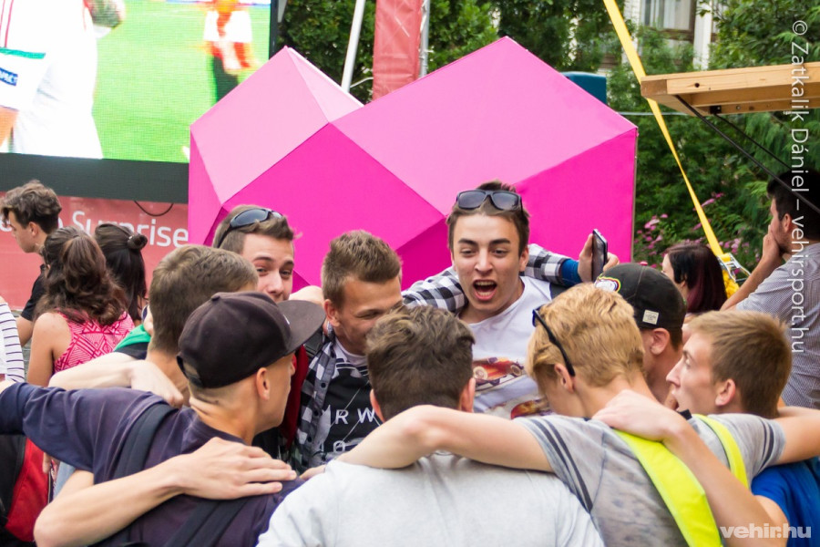 Természetesen óriási üdvrivalgás tört ki Szalai Ádám és Stieber Zoltán góljainál, valamint a lefújás pillanatában. De hasonlóan nagy taps harsant fel akkor is, amikor a mérkőzést közvetítő M4 Sport riportere, Hajdú B. István megjegyezte, hogy a mieink védelmében két veszprémi születésű hátvéd, Kádár Tamás és Lang Ádám is szerepet kapott.