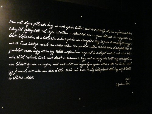 De van egy ellenpélda is, egy másik bejegyzés, szintén egy fiatal középiskolás írta. „Két óra alatt kipróbáltam a drogokat, szenvedélybeteg lettem és kigyógyultam. Az életben nem szeretném megélni mindezt.” – azóta ez a két mondat a kiállítás mottója.