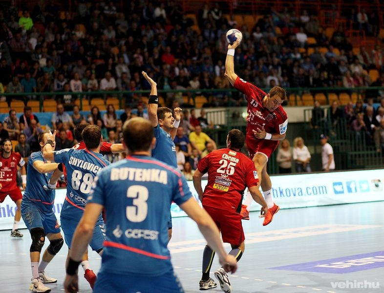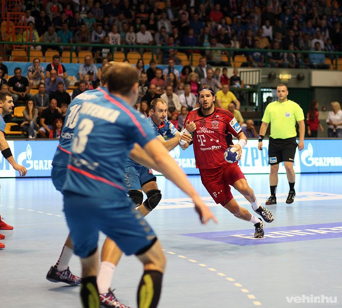 A fentiek miatt természetesen Chema Rodriguez kapott helyett a kezdőben, aki két gyors góllal kezdett, nem sokkal később Marguc volt eredményes egy gyors ellentámadás végén (7. perc: 0:3). A magyar bajnokcsapat nagyszerűen védekezett, Mikler is parádézott – mindezek együtt pedig teljesen elbizonytalanították a fehéroroszokat. Tíz perc is eltelt már a találkozóból, amikor Atman megszerezte az övéi első gólját, majd Dzianisz Rutenka duplázta meg a hazai gólok számát. Sulic is feliratkozott a gólszerzők, Mikler pedig újabb bravúrokkal borzolta a vendéglátó kedélyeit. Kiválóan védett a túloldalon az exveszprémi Pesic is, aki Ilic hetesét megfogta, Marguc eszén viszont már nem tudott túljárni (17. perc: 2:5).