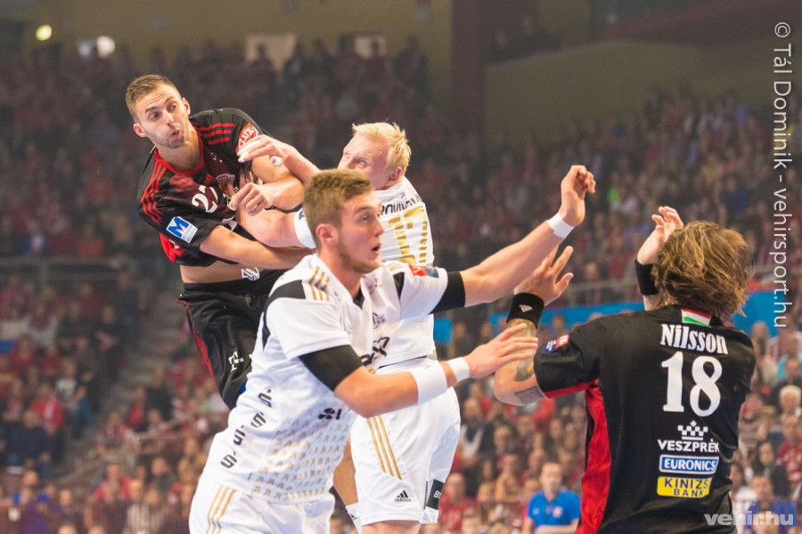 A „zebrák” vért izzadtak a kőkeményen dolgozó bakonyi védelem ellen. Andreas Nilssont nem lehetett tartani, de gyorsan jött a válasz a rivális beállósától, Wiencektől is. Ilic önkívületi állapotban ünnepelte első gólját, Vujin pedig a második hetesénél sem hibázott (16. perc: 6:4). Továbbra is hihetetlenül szorosan zárt a bakonyi retesz. Gislason mester mindent bevetett, együttese hét a hat ellen támadott, de balul sült el a húzás, egy remek labdaszerzésből indulva Marguc az üres kapuba lőtt. Ancsin elöl ás hátul is remekelt, már a negyedik átlövés góljánál járt a válogatott játékos (19. perc: 10:5).