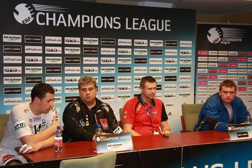 Bogdan Wenta: – Először is gratulálok a Veszprémnek. Nagy élmény lehet ebben a csarnokban játszani ez előtt a nagyszerű közönség előtt. Próbáltunk egyenrangú partnerek lenni, de ez nagyon nehéz volt. Sajnos a hazaiak az elején, s a végjátékban is jobbak voltak, ami eldöntötte a találkozót. Tudtuk, hogy a Veszprém nagy tapasztalatokkal rendelkező, komoly játékerőt képviselő együttes. Véleményem szerint esélyesek bejutni a négyes döntőbe.