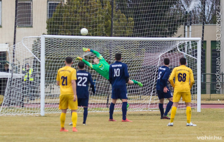 Nem sokkal később a Veszprém előtt adódott óriási lehetőség. Dobsa tüzelt 23 méterről, épp hogy odaért a bal alsó sarokhoz a vendégek kapusa, akinek az egyre erőteljesebben szakadó eső miatt a csúszós talajjal is meg kellett birkóznia.