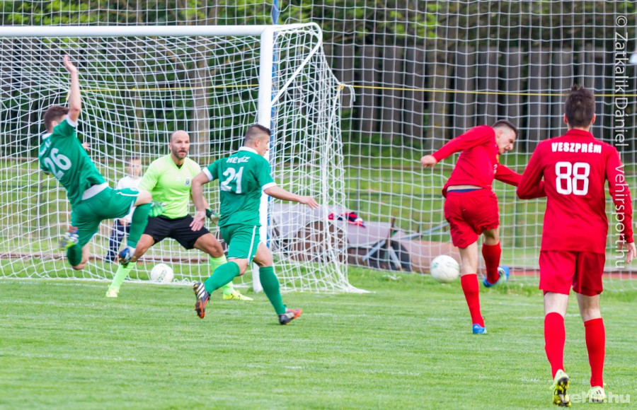 27. perc: Bükit buktatták a tizenhatoson belül, büntetőhöz jutott a Veszprém. A sértett állt a labda mögé. A nem túl erős, bal alsó sarok felé tartó labdát Jánosa könnyedén hárította.