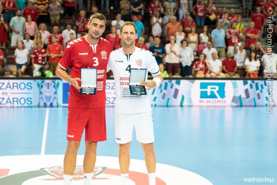 A veszprémi kézilabdacsapat alapításának 40. évfordulója alkalmából rendezett torna vasárnapi játéknapján búcsúzott el az aktív játéktól – és persze a közönségtől – a bakonyi klub két legendás játékosa, Gulyás Péter és Iváncsik Gergő.