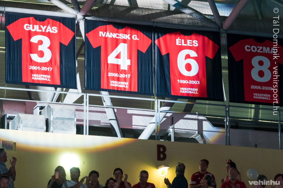 Végül a klub ünnepélyesen visszavonultatta a két ikon mezét. Éles József hatos, Marian Cozma nyolcas, Carlos Perez tízes, Csoknyai István tizenegyes számú dresszéhez hasonlóan Iváncsik négyes és Gulyás hármas számú mezét sem viselhette soha több senki más a veszprémi együttesben.