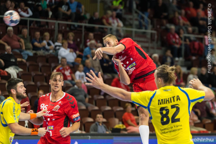 Jól tartották magukat a vendégek a sosem látott összeállításban kezdő Veszprém ellen: noha Mikler többször is védett, Kovacsics két alkalommal – Ugalde és Lékai gólja után – is egyenlíteni tudott. Az újonc átlövők pillanatai következtek: Accambray és Tönnesen is nagy bombát vágott (7. perc: 4-2). A játékrész első harmadáig azonban nem sikerült elhúzni a vendéglátónak, Mikita és Hegedűs után Duris lövése is utat talált a kapuba (10. perc: 6-5).