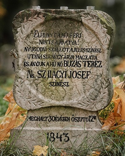 Jól ismerem a jeles színészt, Szilágyi Josefet. is Nyugodni szállott őszutó 12-én. Szent András havában, százhatvanhat esztendeje. Meg szoktam állni Szilágyi Josef kereszt nélküli, kőbevésett emléke mellett.