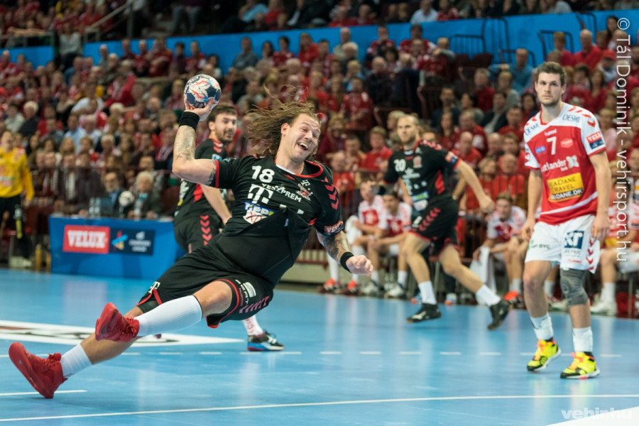 Természetesen telt ház fogadta a magyar és a dán bajnokot, noha a hangulat némileg elmaradt a Flensburg vagy Kiel elleni meccseken látottaktól. Blagotinsek rögtön az első veszprémi támadást gólra váltotta, amire gyorsan válaszolt Larsen. Ilic bombája után a kapusok villantak: Mikler és Aggefors is védeni tudott. Marguc hetesét aztán már nem tudta megfogni a svéd hálóőr (5. perc: 3-1).