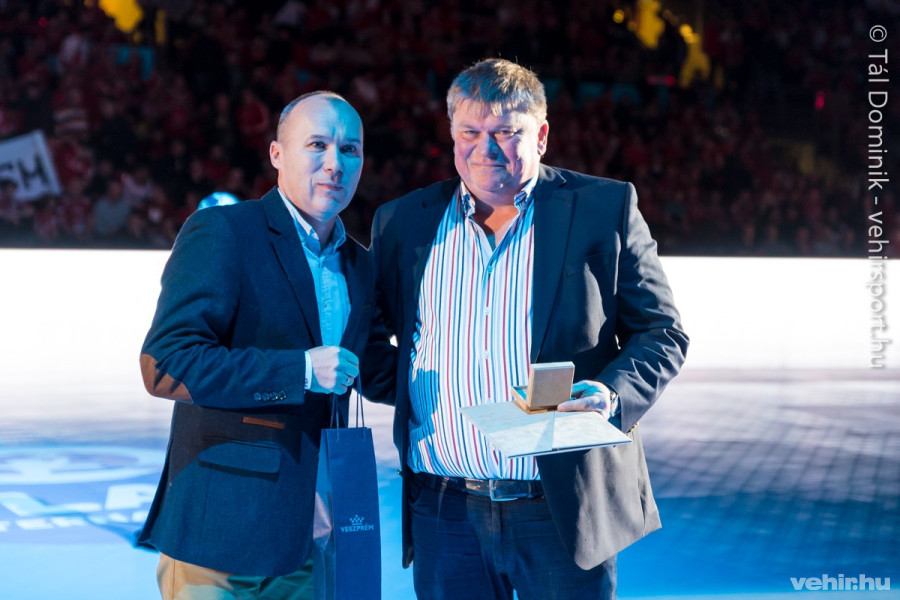 A kezdő sípszó előtt Porga Gyula polgármester a veszprémi kézilabda klub élén végzett értékteremtő munkája, valamint Veszprém város nemzetközi hírnevének öregbítéséért végzett kiemelkedő tevékenysége elismeréseként Pro Meritis díjat adományozott Kálomista Gábornak. Mint ismert, a klubvezető december 1-jei hatállyal lemondott a Veszprémi Építők Sportegyesület elnöki tisztéről, s ezzel együtt mindennemű választott megbízatásáról.