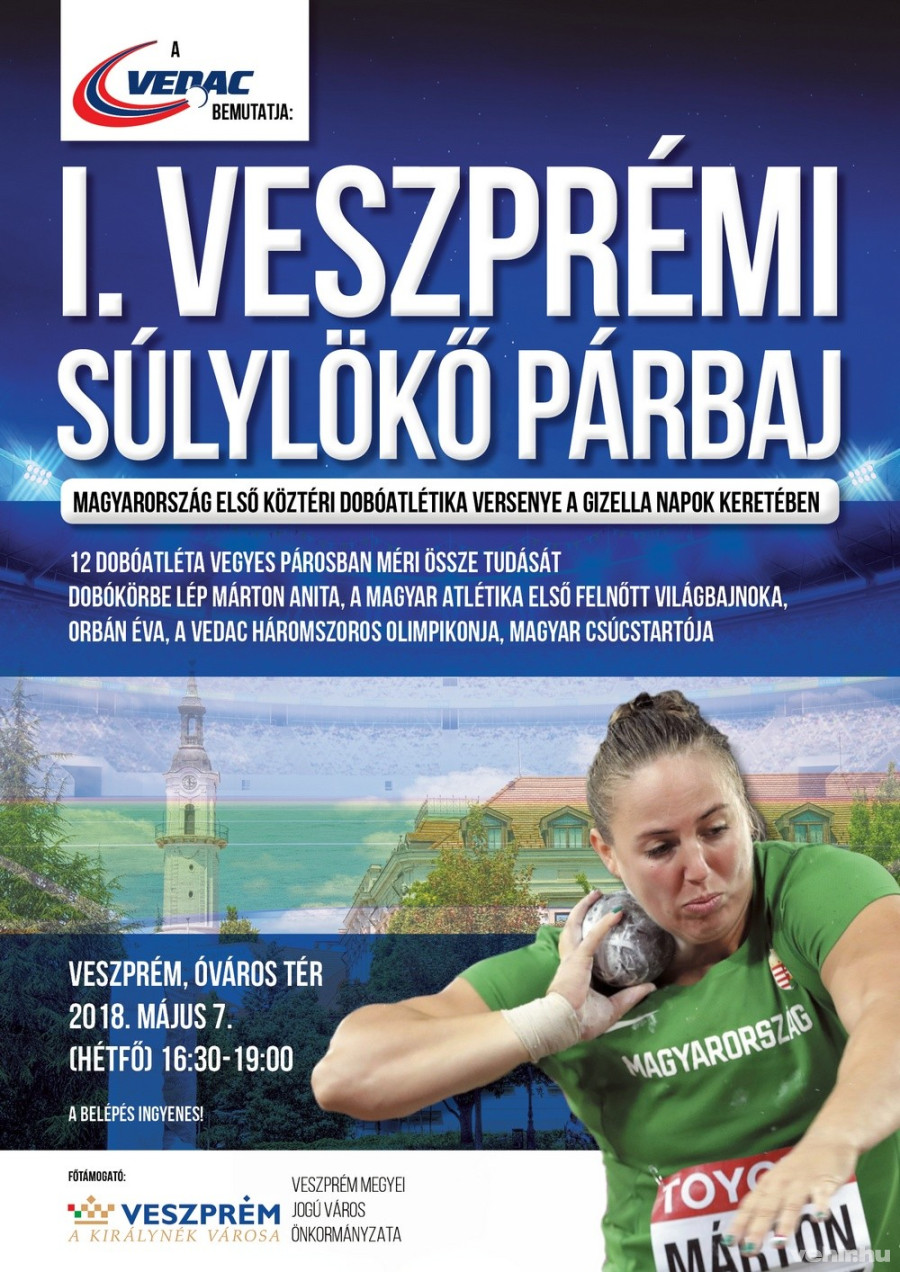 A Gizella napok keretében, május 7-én rendezi meg a Veszprémi Egyetemi és Diák Atlétikai Club (VEDAC) az I. Veszprémi Súlylökő Párbajt. A 16.30-kor kezdődő rendezvény Magyarország első köztéri dobóatlétika versenye lesz, melynek keretében 12 dobóatléta vegyes párosban méri össze tudását. Súlylökő körbe lép Márton Anita, a magyar atlétika első felnőtt világbajnoka, valamint Orbán Éva, a VEDAC háromszoros olimpikonja, magyar csúcstartója is. A VEDAC-ot képviselve megméreti magát az EYOF-győztes Aranyi Ferenc és az ifjúsági Európa-bajnokságra készülő Péringer Márk is.