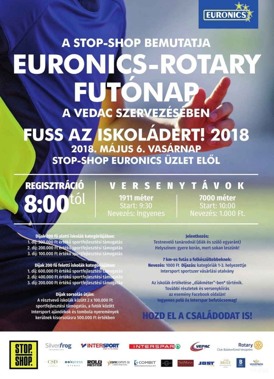 Új lendületet kapott a története során több tízezer veszprémit megmozgató városi futóverseny, amely vasárnap délelőtt, immár Euronics-Rotary Futónap néven várja a környékbeli családokat a Stop-shop bevásárlópark területén.