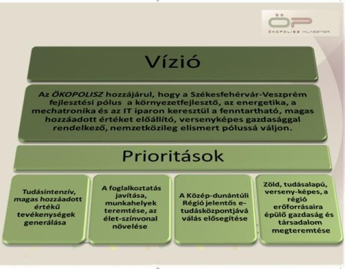 A többségében gazdasági szervezetekből álló klaszter operatív működtetésével az ÖKOPOLISZ Klasztermenedzsment Kft. van megbízva, amely az elmúlt évben sikeresen pályázott a Közép-dunántúli Regionális Ügynökség KDOP 1.2.1 pályázatán. Az elnyert