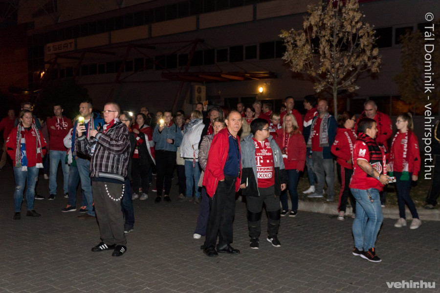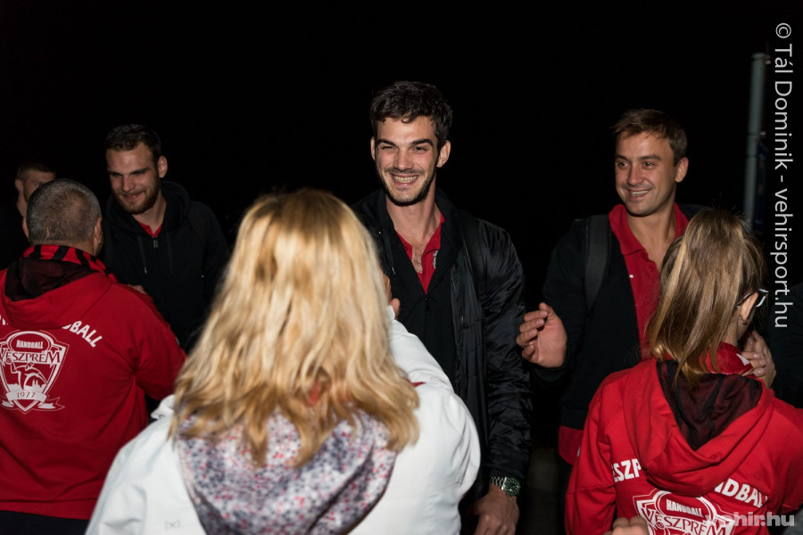 A győztes csapat busza szombaton 23.30-kor gördült be a Veszprém Aréna parkolójába, ahol a szurkolók már várták az együttest, hogy kifejezzék gratulációjukat.