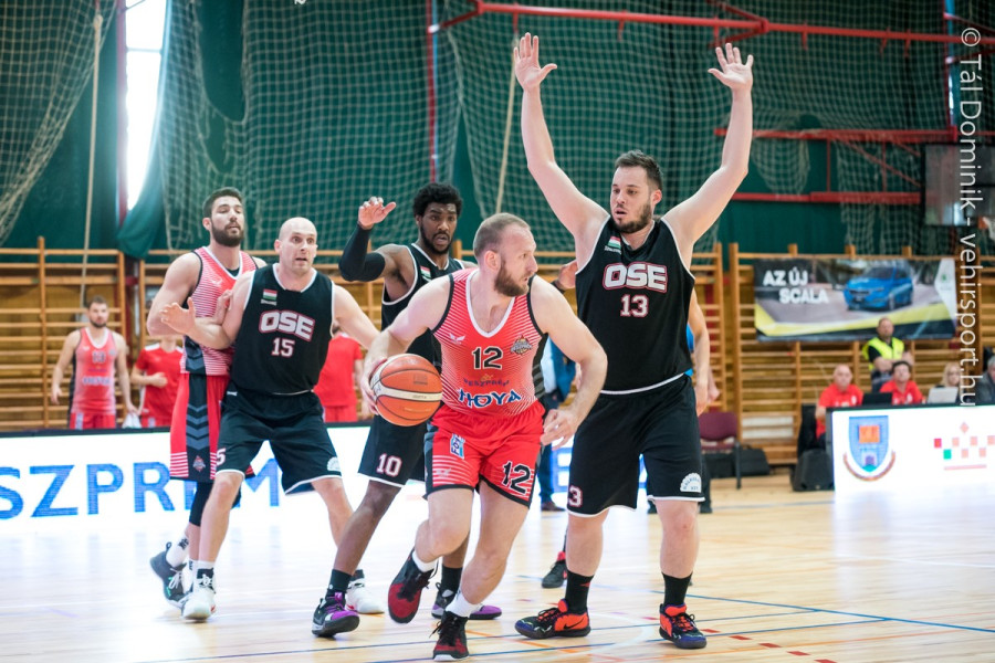 Az oroszlányiak a folytatásra még jobban megszervezték a védelmüket, ennek tudható be, hogy a – két év után megint döntőt vívó, a szerencsével hadilábon állt – bakonyiak mind több hibát vétettek, görcsösen igyekeztek, ami Mérész mesternek sem tetszett, mert kisvártatva időt kért (19-24). Ám (…akkor még) hiába dolgozott nagy szív a tanítványaiban, képtelenek voltak mit kezdeni Sömenek Martinék középen prímán zárt hátsó alakzatával; ha pedig mégis helyzetbe kerültek, a tiszta dobásokkal is meggyűlt a bajuk (21-29). A slamasztikában a bakonyiak megpróbáltak valamit kiötleni, a védekezésüket feljebb tolták, letámadtak, de Mohácsi doktorék minden akcióján kézzelfogható volt, hogy el akarják venni az alapszakasz-győztes pályaelőnyét (25-33). A Hoya-mezesek közül Madár András állt a serege élére, az évad legjobb veszprémi spílere újra és újra megvillant, ám noha a tizenhatodik percben tizennégy pontnál járt, borítékolható volt, hogy a magassági fölényét kihasznált – koncentráltabb és motiváltabb – OSE ellen egy fecske nem csinál nyarat (30-33). A vendégek túlzottan nagy kihívás elé állították a mieinket, ráadásul a helyzetet az sem javította, hogy sportolóink dobóformája visszaesett, így a büntetőkkel is gondjaik akadtak (32-37). A félidő hajrája egyértelműen a nagyobb „merítési” lehetőséggel bíró riválisé volt, előbb hét, majd kilenc pontra hizlalták az előnyüket, és olyan intenzitással pattogtattak, ami rossz végkifejletet sejtetett (34-43).