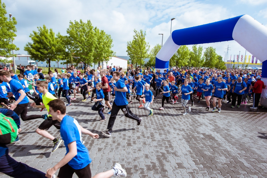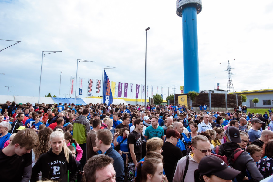 A Stop.Shop bevásárlóközpont területén áthaladó futóverseny regisztrációja már 8:15-kor megkezdődött, az Euronics Műszaki Áruházlánc előtti téren percről, percre nőtt a tömeg, amerre a szem ellátott, mindenütt kék pólóba öltözött sportemberek, szülők és gyerekek várakoztak türelmesen a rajtra, miközben DJ Smash a színpadról fokozta a hangulatot.