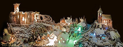 - Nyáron friss pisztrángokat tartunk az akváriumban, de ahogy kiürült, úgy gondoltam, jól nézne ki benne egy újabb édességfalu. Két hétig dolgoztam rajta, sokszor éjjel is, a konyha minden tagját bevonva az építkezésbe; volt, aki rénszarvast formázott, míg mások "építőköveket" a várhoz. Végül összesen 3 kg mézet, 11 kg kiló cukrot, több mint 8 kg lisztet és csaknem 3 kg margarint emésztettek fel a munkálatok – mondta el lapunknak a mester.