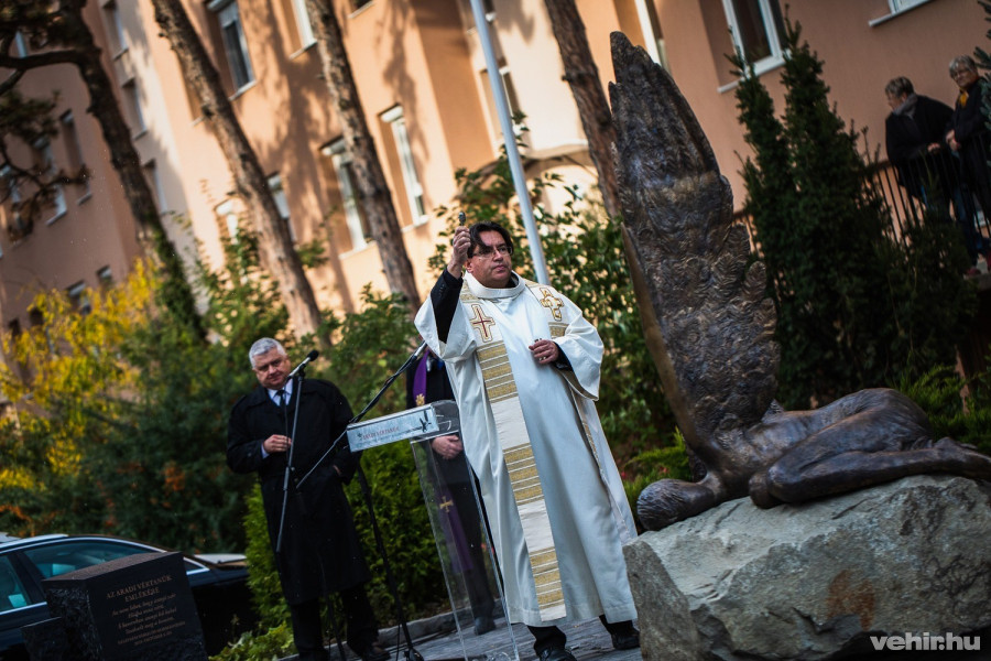 Az új emlékművet Takáts István érseki kancellár áldotta meg Niederhoffer Zoltán és Isó Dorottya lelkészek közreműködésével.