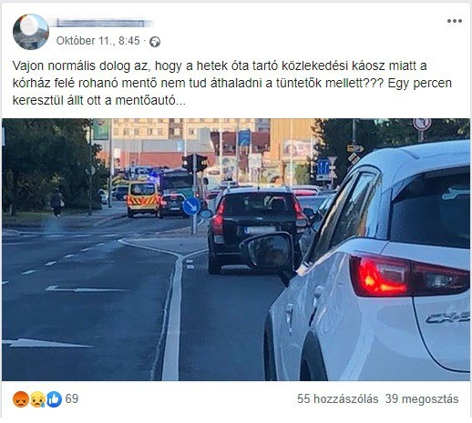 Az elmúlt napokban szintén a közösségi médiában megjelent olyan poszt is, amin az látszik, hogy a szirénázó mentőautó sem tudott akadálytalanul elhaladni a demonstrálók mellett az útzár miatt.