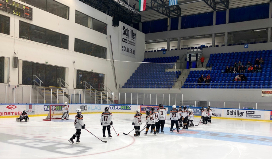 A nyitómeccsen a Vasas volt az ellenfelünk. A mieink hála Istennek megilletődés nélkül korcsolyáztak ki a jégre. Az önbizalom a teljes mérkőzésen kitartott, mi diktáltuk a tempót és mi vezettünk szebb támadásokat. Az eredmény ebben a korosztályban ugyan továbbra sem rögzíthető, de ha a Vasas az utolsó nagy hajrában nem tudta volna gólra váltani az igyekezetét, akkor a mi kettő találatunkra csak egy piros-kék jutott volna. Így azonban egállal tértünk haza az első budapesti túráról.