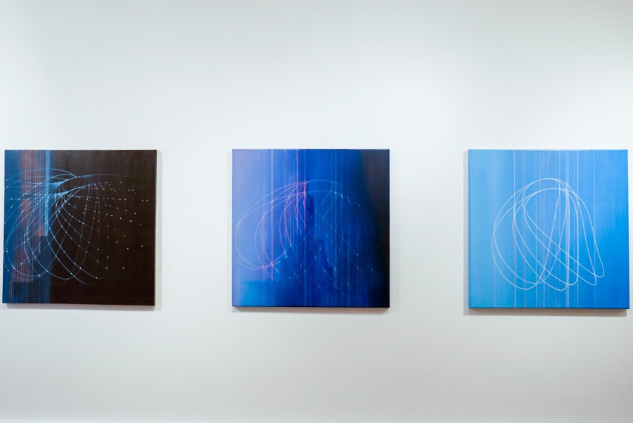 Ahogy a festő fogalmaz egy művéről, 2008-ban egy napórát készített, melynek árnyékvetője volt a szalag. Óránként egy körvonalat készített úgy, hogy a szalag vetületének széleit rajzolta le, tehát az árnyék, mint tónus töltötte ki a körvonalat. A fény beesési szöge az árnyékvonalak geometriai rendszerét adja ki. A rendszer azóta bővül és a szalagnak folyamatosan átalakul a szerepe. A 15 alkotásból álló most bemutatott sorozat a ponttal, mint a pillanattal és a párhuzamos vonallal, mint tér-idő szelettel foglalkozik.