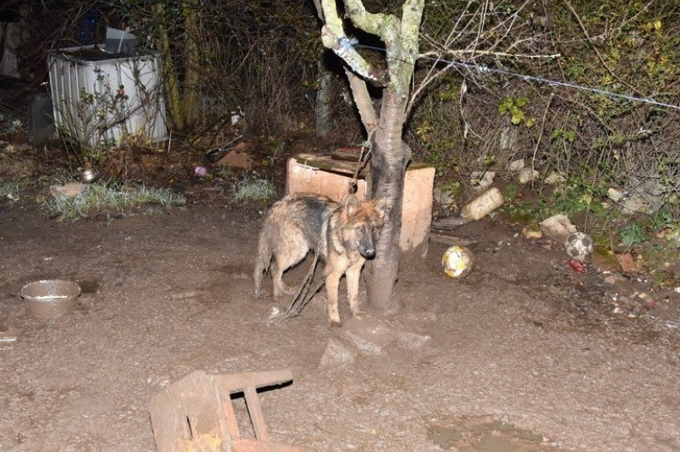 A Veszprém Megyei Rendőr-főkapitányság Tevékenység-irányítási Központjába november 29-én este érkezett bejelentés arról, hogy Veszprémben, a Csatárhegy városrészen egy fához láncolt kutya napok óta vonyít és többször összeesett. A helyszínre érkező járőrök egy lesoványodott, sáros, koszos, ázott és láthatóan rossz állapotban lévő németjuhász jellegű ebet találtak. Az állat nyakában egy körülbelül másfél méter hosszúságú lánc lógott, ami már benőtt a nyakába.