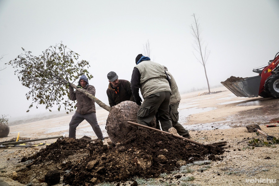 Ha a kora délutáni fagyos, ködös időjárás elszomorító is volt a Gulya-dombon állva, a Veszprémi Állatkert lelkiismeretes dolgozói gondoskodtak a jókedvünkről, ugyanis szerdán újabb facsemeték kerültek elültetésre: ezúttal a park előterében.