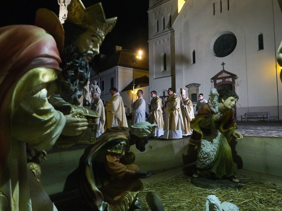A hagyományos éjféli szentmisét a Szent Mihály-bazilikában a főpásztorral együtt Takáts István érseki helynök, Varga István bírósági helynök, az Érseki Hittudományi Főiskola és a Boldog Gizella Szeminárium rektora és Nagy Károly apát, kanonok, a Szent Mihály Bazilika plébánosa tartotta. Karácsony vigíliáján a bazilikát zsúfolásig megtöltötték a hívek, a Duna Televízió élő közvetítése révén pedig világszerte követhették a liturgiát.