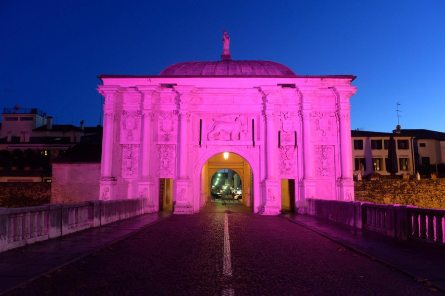 Treviso-ban a Porta San Tomaso-t festették rózsaszínűre
