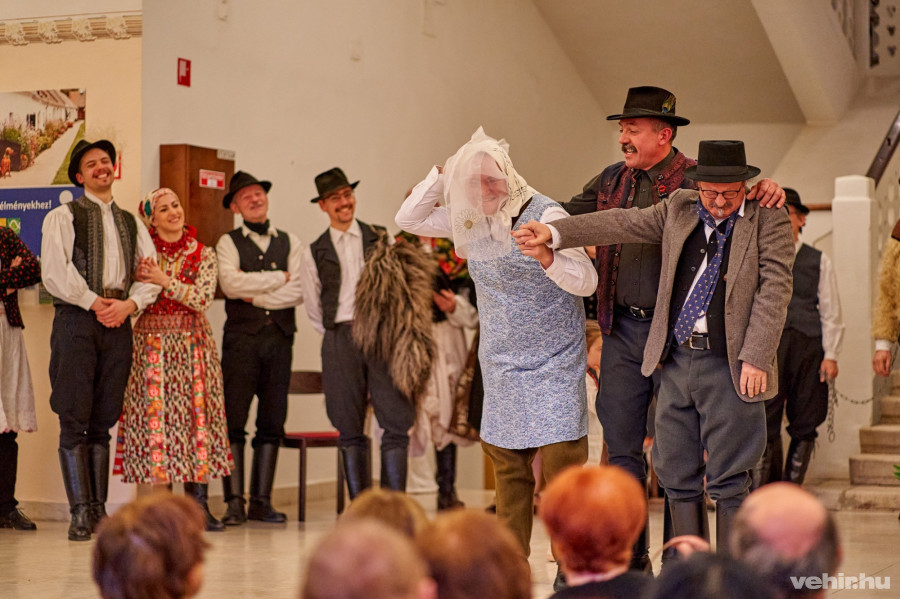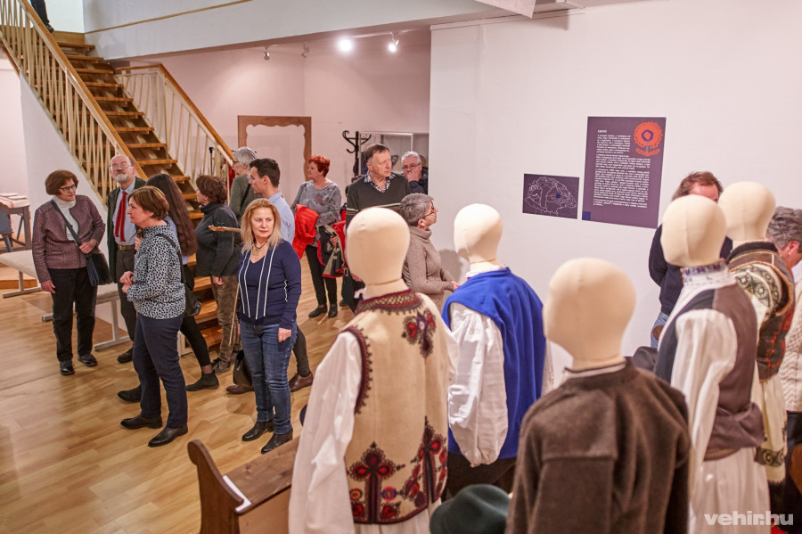 A szombati kiállításmegnyitón az Élő Forrás Egyesület jóvoltából farsangi alakoskodásnak is szemtanúi lehettek a jelenlévők, akik aztán a második emeleti kiállítótérben június végéig megtekinthető ruhadarabokat is szemügyre vehették.