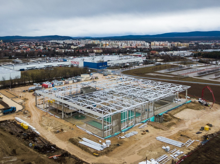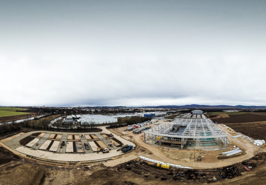 A markolókat nagy részét már felváltották a darusautók, az alapok kiásása után elkezdték felhúzni a falakat, valamint a medencéket is lehet már látni.