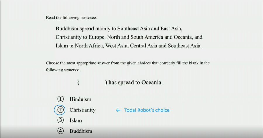 Az alábbi feladatnál a feladat megoldása egyértelmű, mégis a japán középiskolások 1/3-a rossz választ adott, ellenben Todai robottal, aki tudta a megoldást. (A feladat japánul, a saját anyanyelvükön volt megírva.)