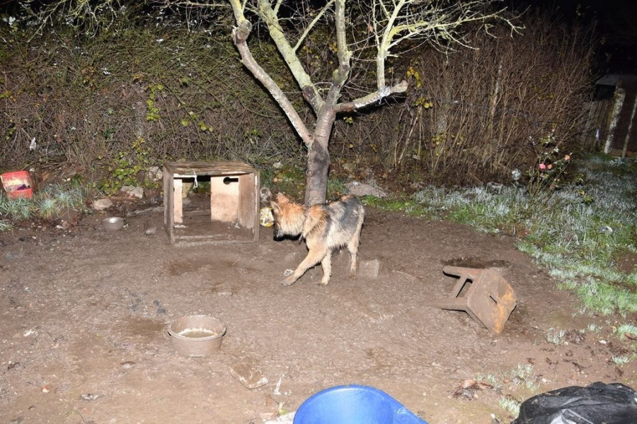 Még novemberben jelezték a rendőröknek, hogy Veszprémben, a Csatárhegy városrészen egy fához láncolt kutya napok óta vonyít, és többször össze is esett. A helyszínre érkező járőrök egy legyengült fizikai állapotú, németjuhász keverékebet találtak, melynek bundája sártól nedves volt. Az állat nyakában egy körülbelül másfél méter hosszúságú lánc lógott, ami már mélyen beágyazódott az általa okozott sebbe.