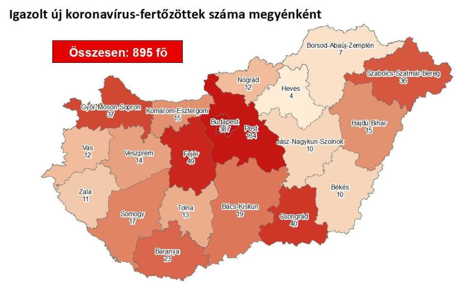 78 új koronavírusos fertőzöttet igazoltak az országban kedden, ezzel 895-re nőtt a bizonyított esetek száma az országban – tájékoztatott a kormányzati koronavírus portál.