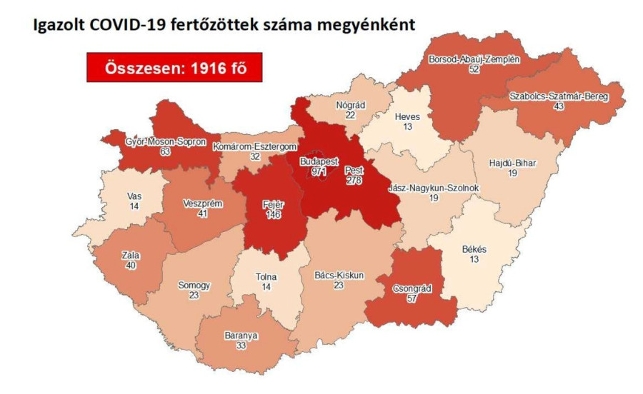 Veszprém megyében négy új esetet regisztráltak, ezzel 41-re nőtt az itteni betegek száma.