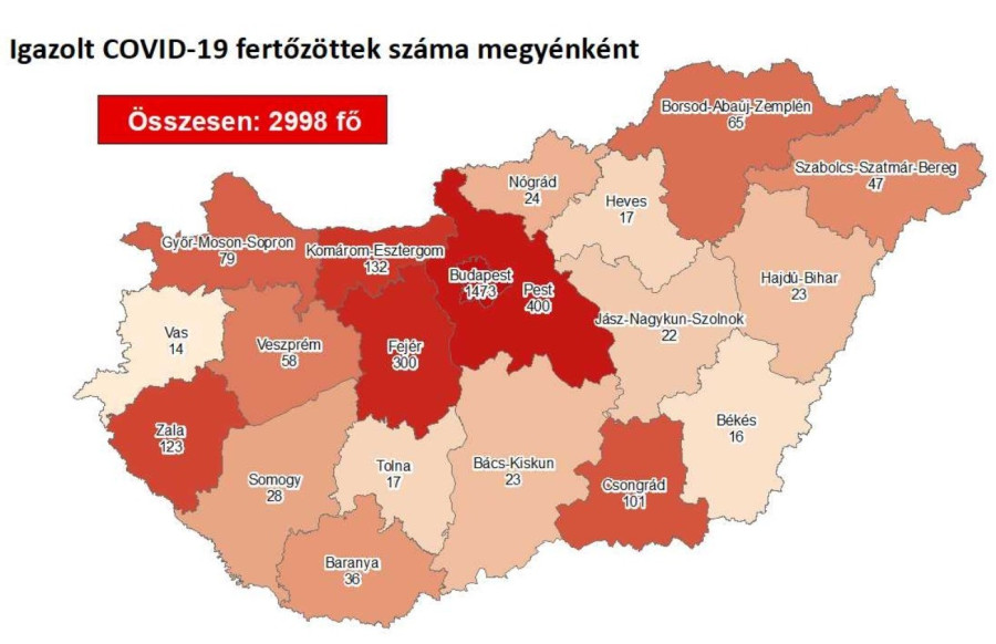 Szombaton 56-tal nőtt a hazai koronavírus fertőzöttek száma, ezzel összesen már 2998 beteget tartanak itthon számon - írja a kormányzati tájékoztató portál. A beazonosított koronavírus-fertőzötteknél azonban jóval nagyobb lehet a tényleges vírushordozók száma, akik fertőzhetnek.