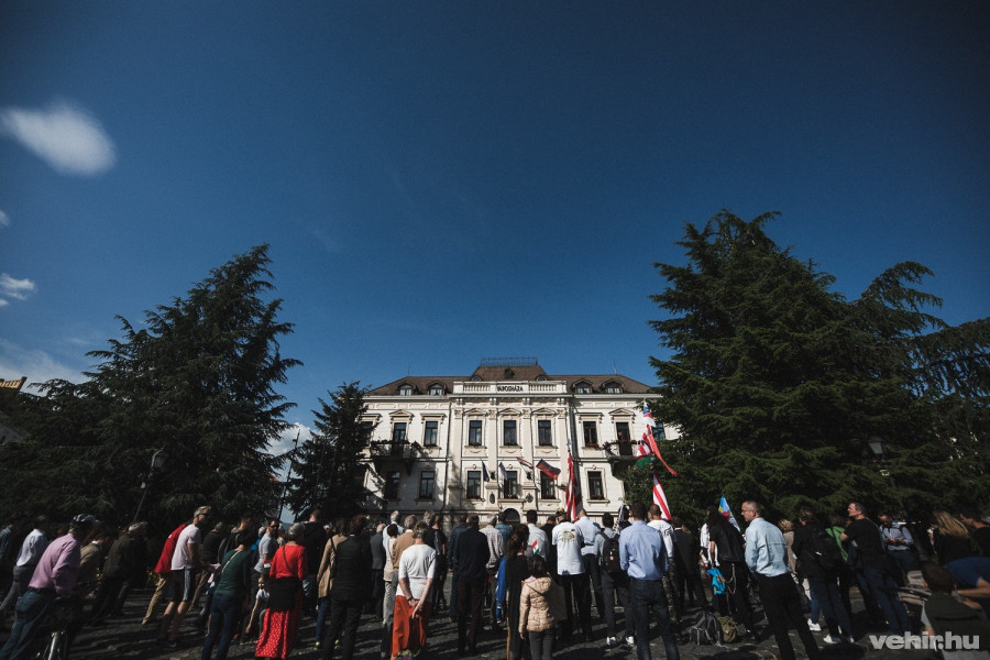 „A trianoni békediktátumot száz évvel ezelőtt, 1920. június 4-én írták alá Versaillesban, a Nagy Trianon-kastélyban. Azon a pénteken egész nap gyásznapot hirdettek Magyarországon. 16 óra 32 perckor megkongott az ország összes harangja, megszólaltak a gyárszirénák, megálltak a villamosok, az autóbuszok, lovaskocsik. Leállt a munka és még a bírósági tárgyalásokat is felfüggesztették. Megálltak a vonatok, összeverődtek a megrendült, sokszor zokogó emberek, hogy ismeretlenül is próbálják vigasztalni egymást”-elevenítette fel az akkori eseményeket emlékező beszédében Oberfrank Pál, a Petőfi Színház igazgatója a Városháza előtt, pontban 16 óra 32 perckor.