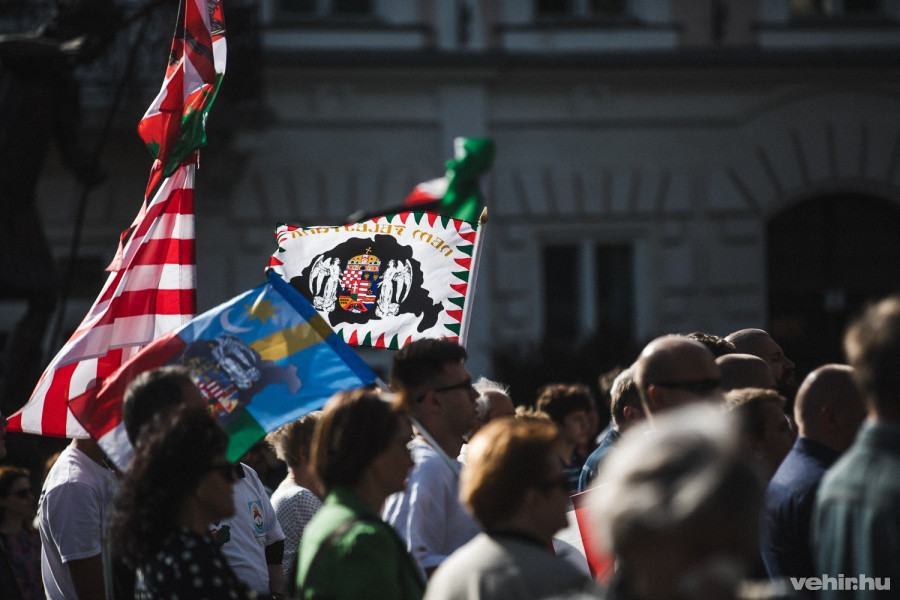 „Így állunk mi is itt most. Mély gyásszal a szívünkben, könnyes szemmel a ránk kényszerített béklyótól, de megtanultuk, hogy a magyar nemzetet nem lehet lesöpörni Európa térképéről. És ez nem pátoszos kijelentés, hanem történelmi tény”-hangoztatta a színházigazgató.